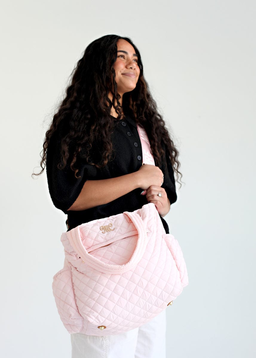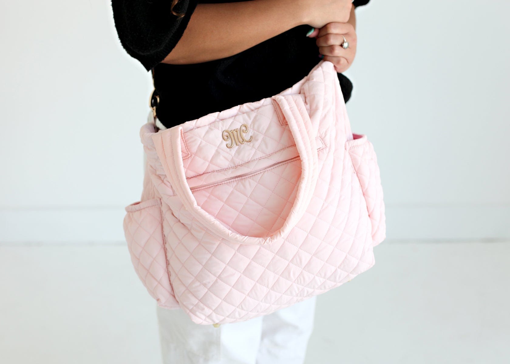 Introducing the Everything Bag - the epitome of versatility and style! This exceptional bag effortlessly combines a fashion-forward light pink quilted fabric with a highly functional design. Whether you're embarking on a travel adventure, need a reliable diaper bag, hitting the gym, or simply seeking an everyday companion, the Everything Bag has got you covered. With a dozen pockets and easy-to-clean material, it offers ample storage while maintaining a pristine appearance