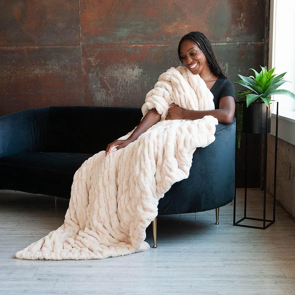 - Details: Wrap yourself in the soft, warm tones of our Hugs Oatmeal blanket?a cozy neutral with a twist. This plush, stretchy blanket features a unique blend of peachy, pink, and sun-kissed hues that shift subtly in the light. Its gentle color adds a soothing, elevated touch to any room.