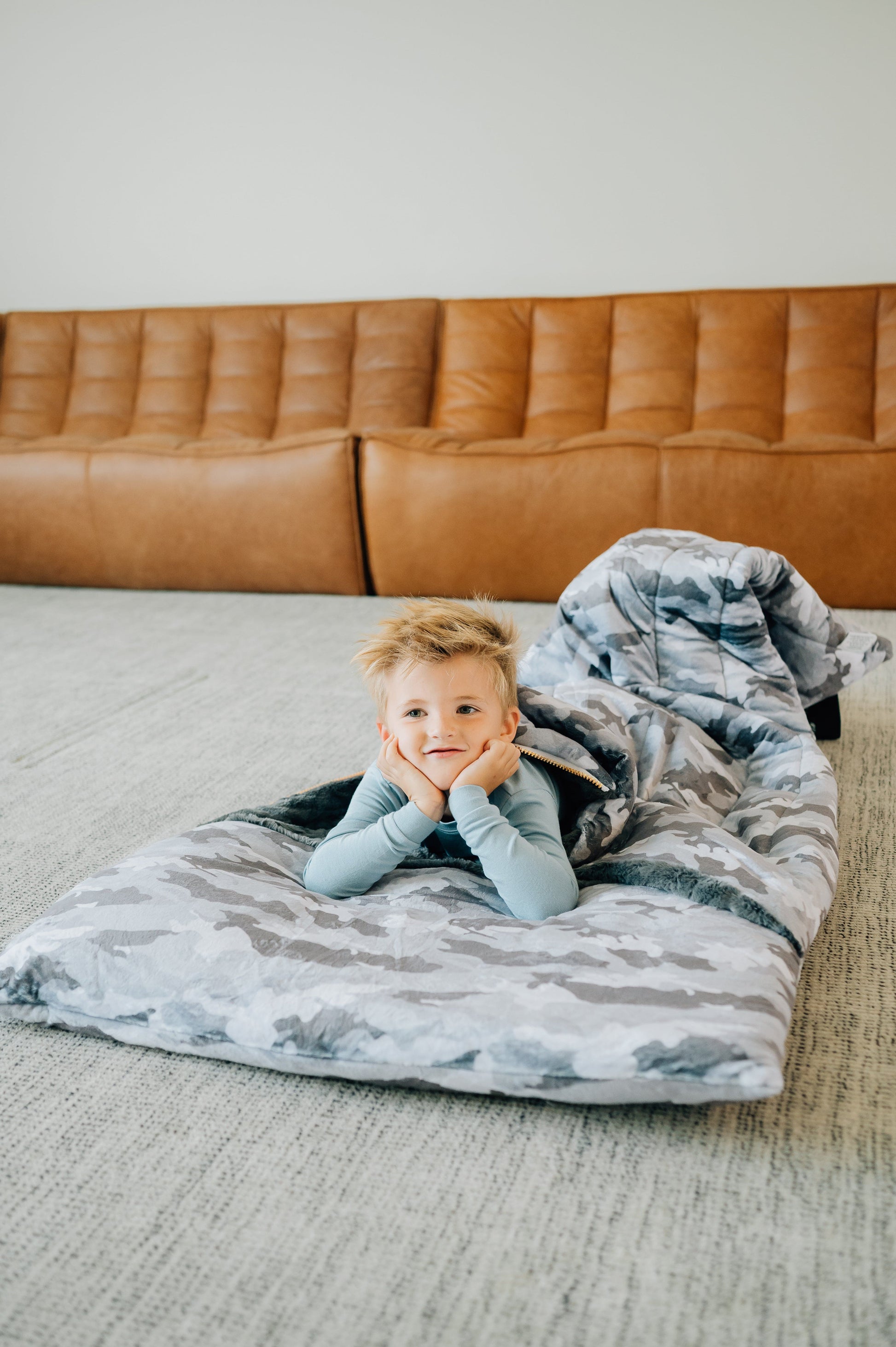 The Little Couture by Minky Couture Sleeping Bag is the perfect cuddly companion to keep you warm and cozy for slumber parties, movie nights and more! The Sleeping Bag includes a Minky Couture Sorbet plush lining and a soft minky shell. The built-in pillow makes it easy and functional to take on the go! The attached elastic straps provide a simple way to roll and store your bag. The Sleeping Bag comes in a protective draw-string carrying bag - that includes an adjustable strap for carrying and name tag for personalization.ÿ